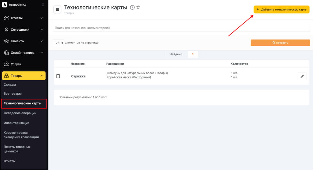 Подробнее о том, как закрепить технологическую карту за услугой, читайте в статье.