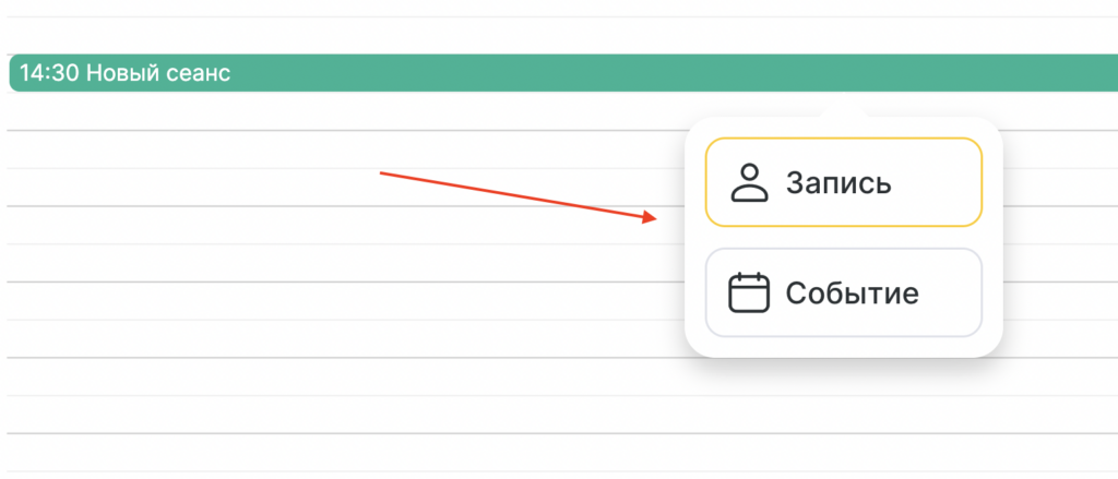 - «Смешанная». При создании записи появятся две кнопки: Запись (для индивидуальной записи) и Событие (для групповой записи).