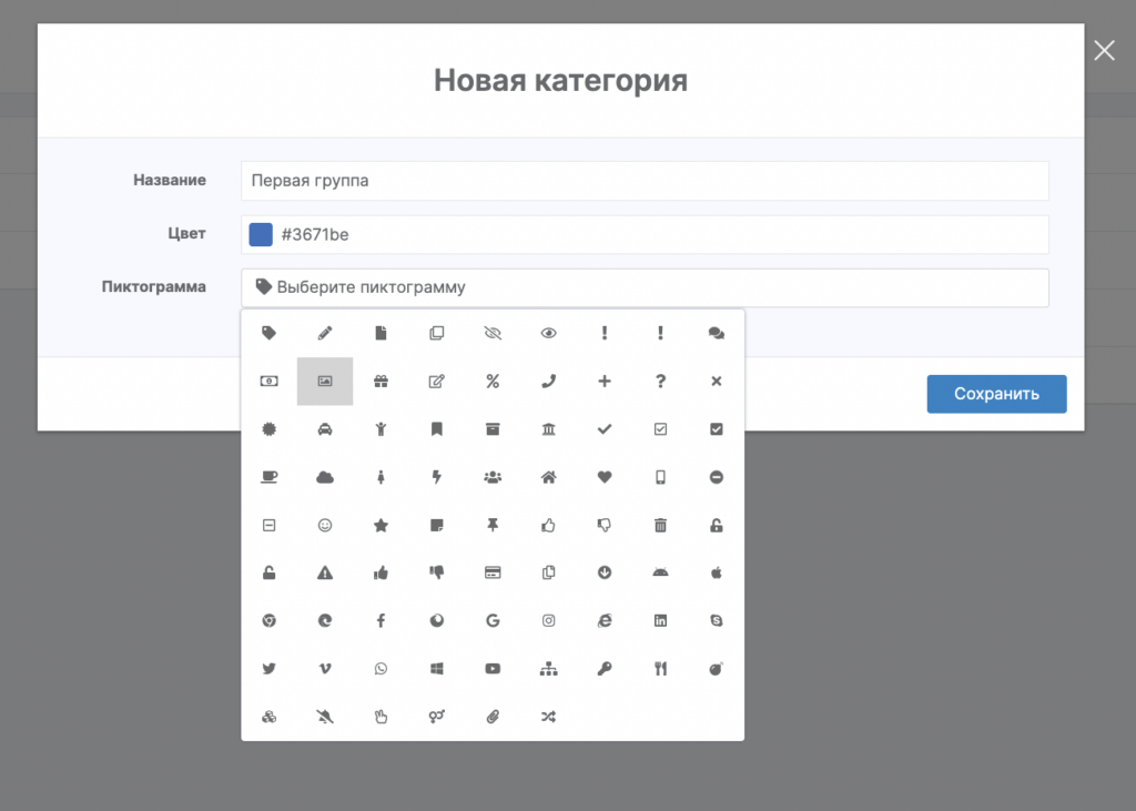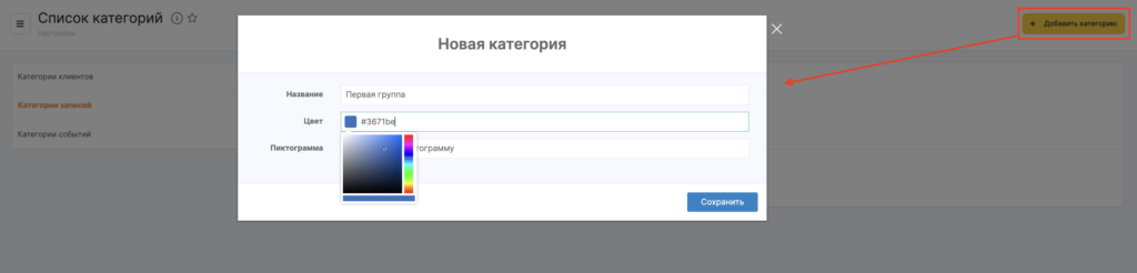 Укажите название категории, выберите цвет метки и пиктограмму, нажмите кнопку Сохранить. После этого новая категория появится в общем списке.