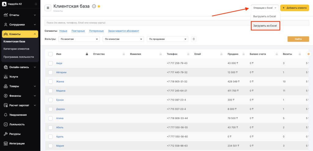 - Перейдите в режим Администрирования > раздел Клиенты > Клиентская база.