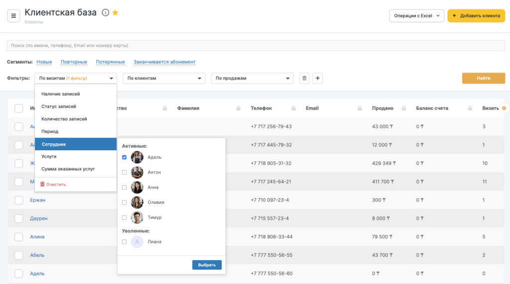 Поможет найти клиентов, которые записывались к определенному сотруднику. - Услуги