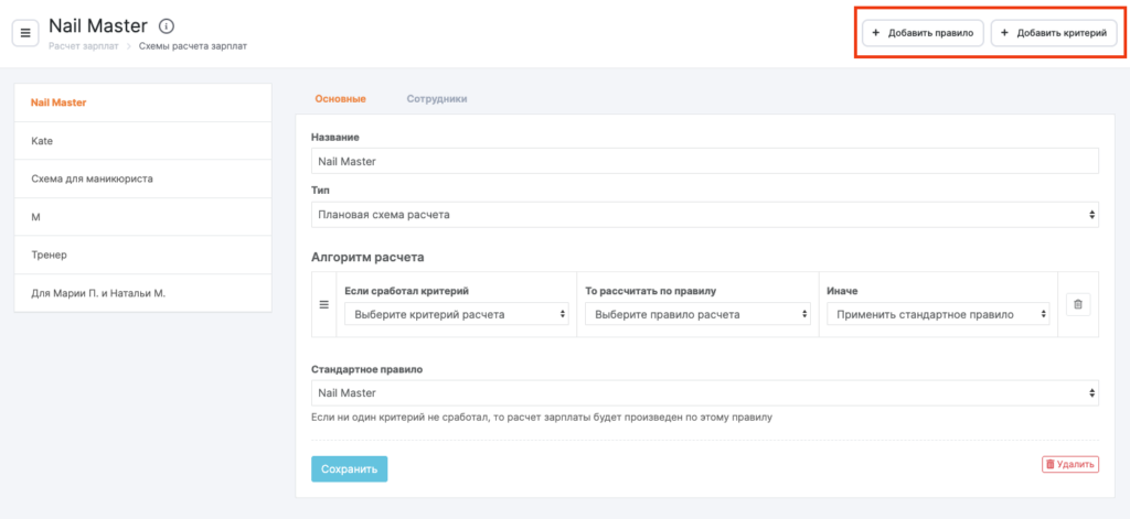 Подробно об этих настройках читайте в статьях Создание нового правила расчета и Создание нового критерия расчета.