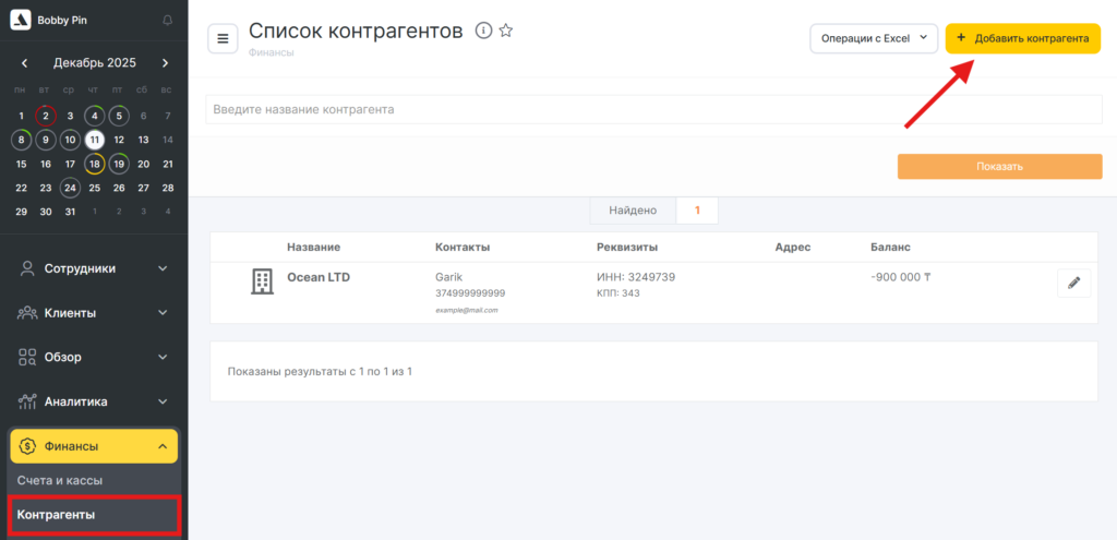 Также, список контрагентов можно загрузить из Excel. Как это сделать, читайте в статье.