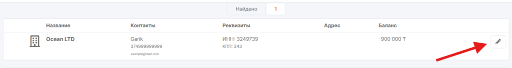 - Выберите контрагента, нажав на иконку карандаша справа от его названия.