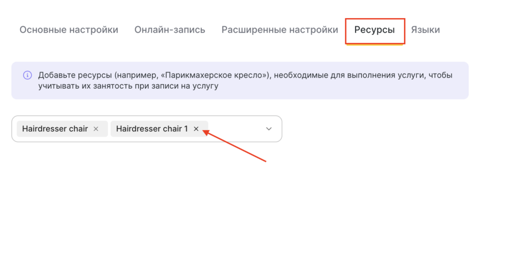 Ресурсы будут бронироваться при записи, только если они прикреплены к услугам.