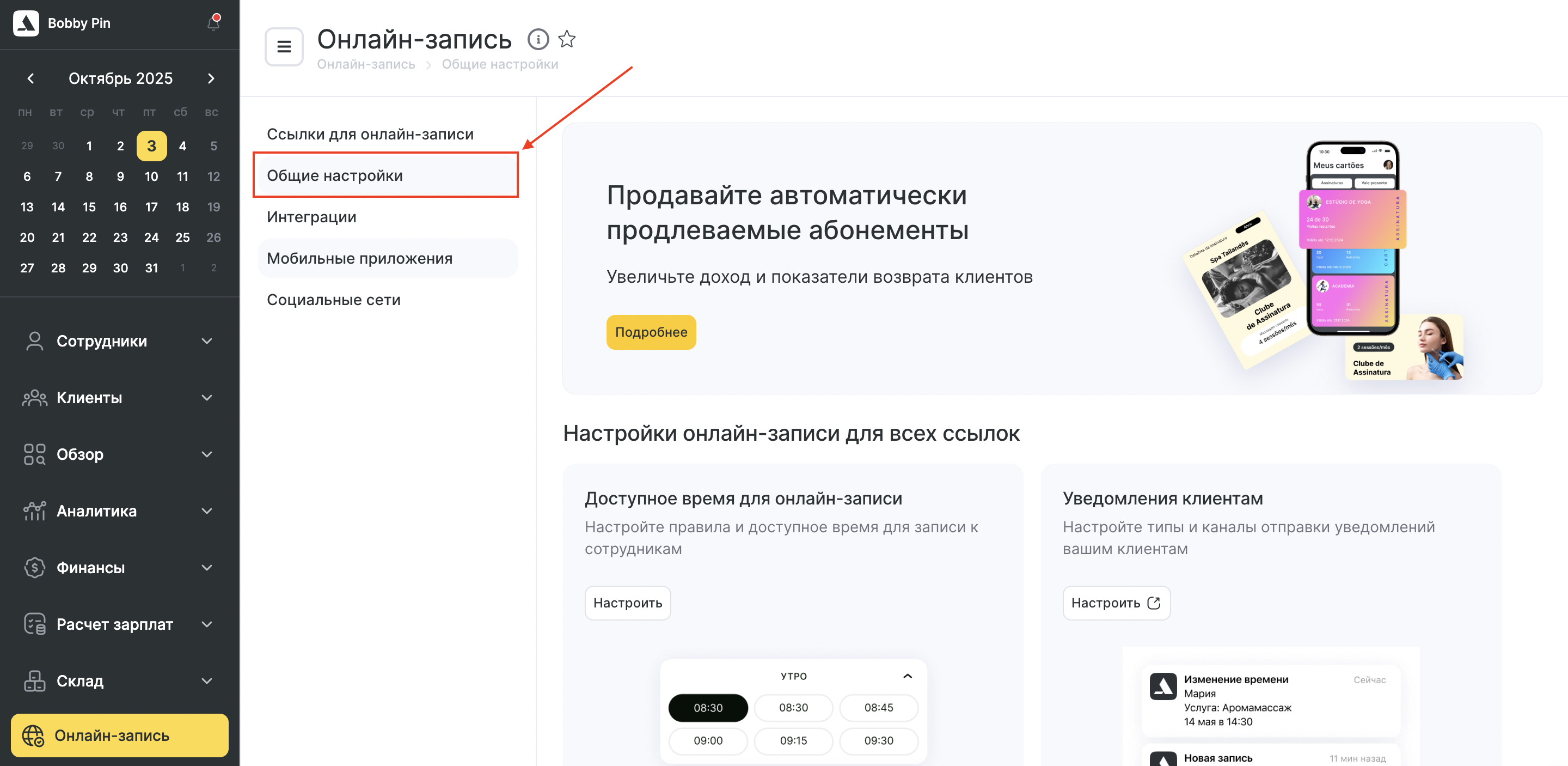 При онлайн-записи любой пользователь соглашается с Условиями использования и Политикой конфиденциальности. Для этого перейдите в раздел Онлайн-запись > Общие настройки.
