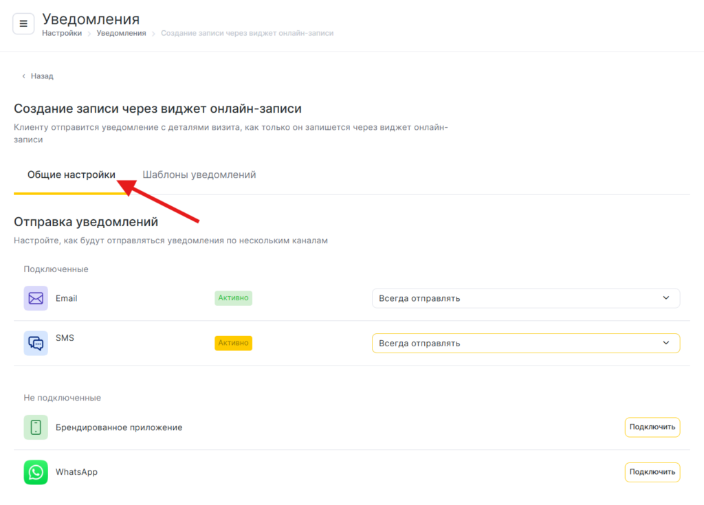 - На вкладке Общие настройки настройте, как будут отправляться уведомления по нескольким каналам. Подробнее о сценариях отправки уведомлений по разным каналам читайте в статье.