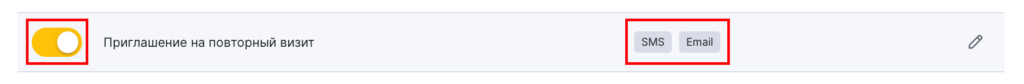 - В блоке Клиенту > Работа с возвращаемостью выберите тип Приглашение на повторный визит, нажав на название уведомления или иконку карандаша.