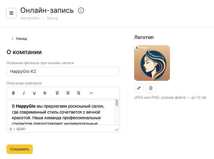 Для загрузки логотипа, который будет отображаться в ссылке для онлайн-записи: