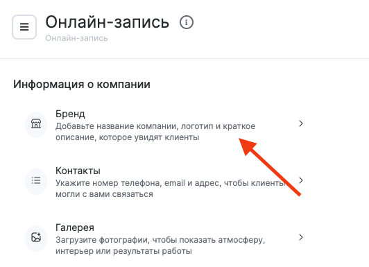 1. В разделе Онлайн-запись > Настройки перейдите в блок Бренд.
