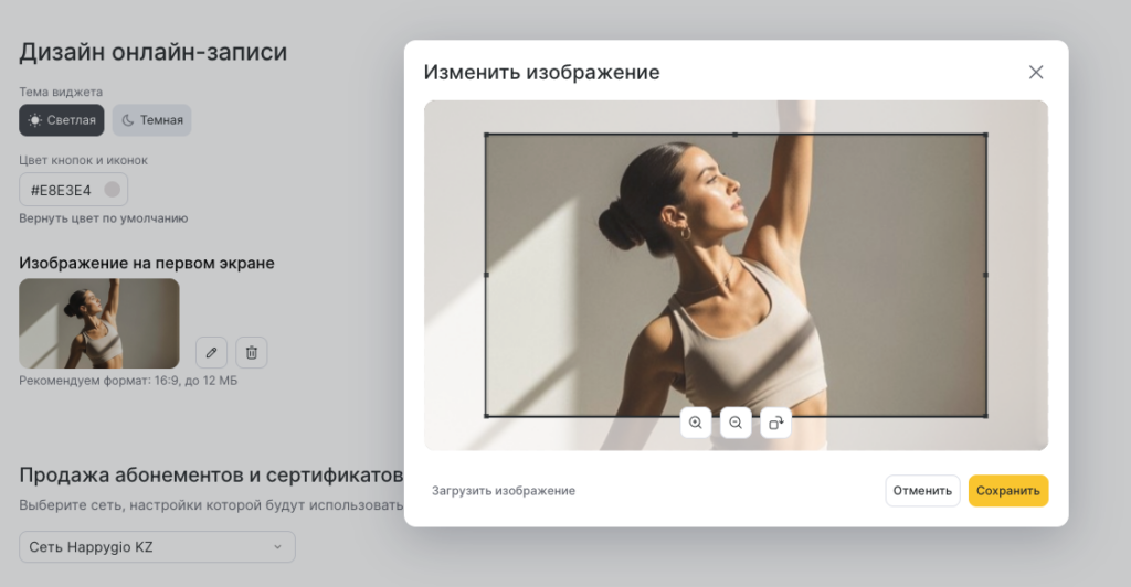 1. Чтобы загрузить изображение на первом экране, нажмите на кнопку Загрузить изображение. В открывшемся окне найдите раздел Дизайн онлайн-записи.