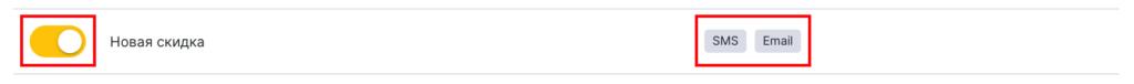 - В блоке Клиенту > Работа с возвращаемостью выберите тип Новая скидка, нажав на название уведомления или иконку карандаша