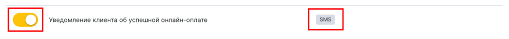 Если у вас подключена онлайн-оплата, то вы можете включить уведомление, которое отправляется клиенту, если онлайн-оплата произведена успешно.