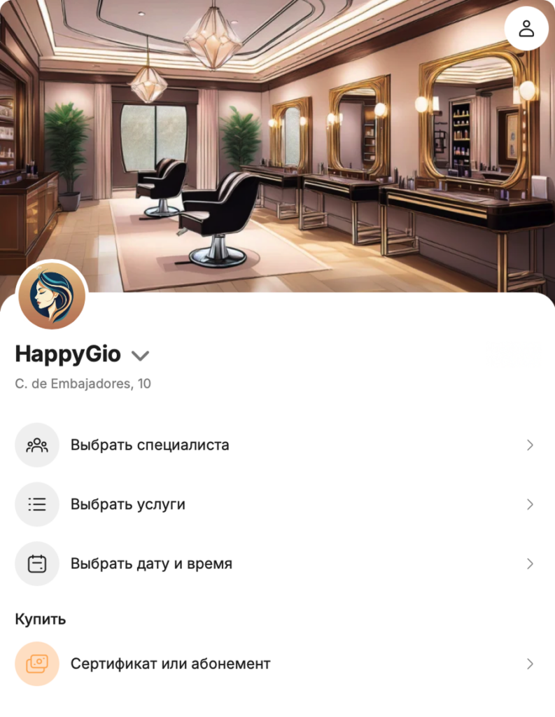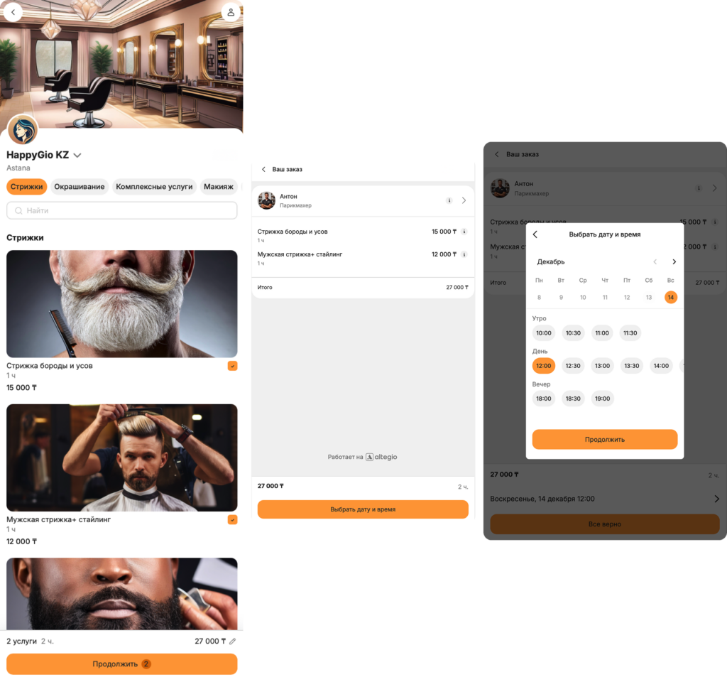 В меню шаги записи практически ничем не отличаются от пошагового формата, исключения составляют отображение ближайшего времени для записи на шаге выбора сотрудника и возможность редактирования деталей записи на последнем шаге.