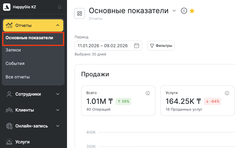 Отчёт Основные показатели помогает:
