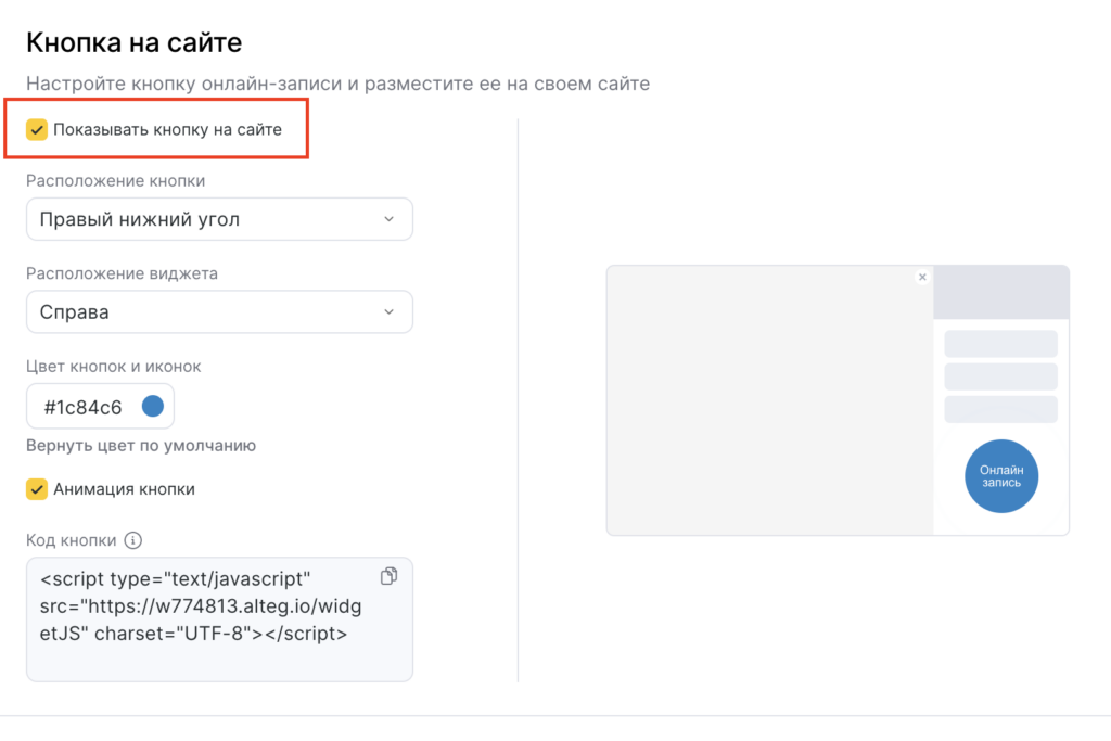 Где найти код кнопки в Altegio #