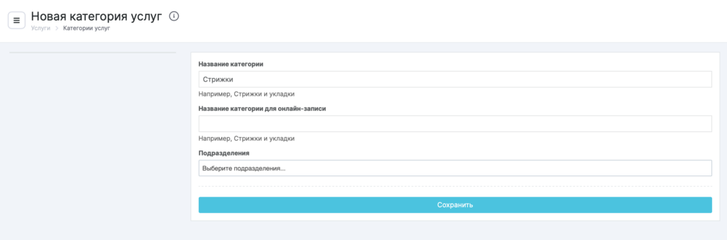 - Нажмите кнопку Сохранить. Добавьте все необходимые услуги в категорию.