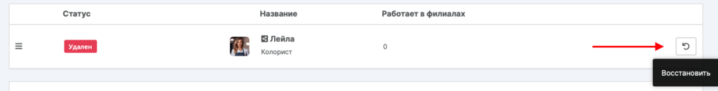 Удаленных и уволенных сотрудников можно восстановить.