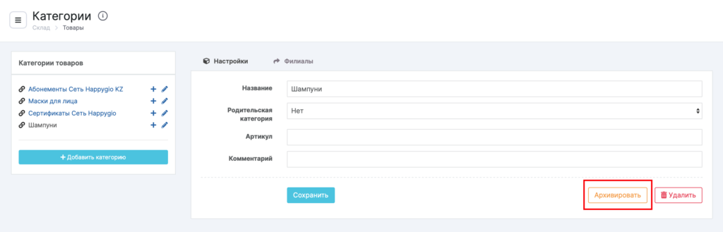 Как заархивировать категорию или товар #