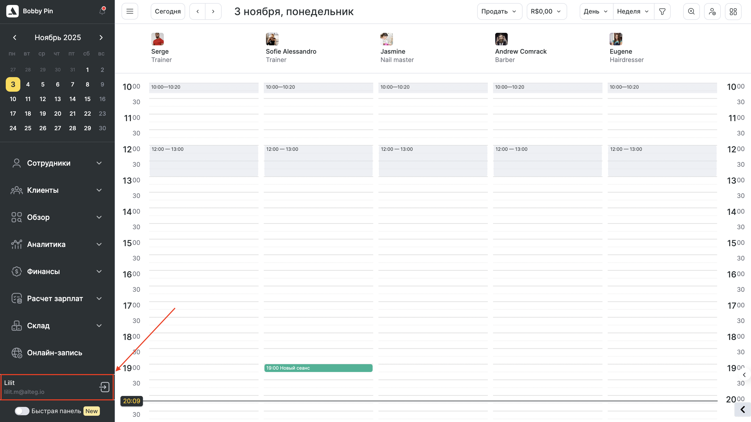 Чтобы перейти в личный кабинет, нажмите на ваше имя в левом нижнем углу на боковой панели.