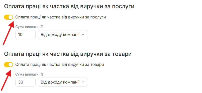 - Увімкніть опцію Виплата за продані товари, якщо співробітники отримують комісію з продажу роздрібних товарів.