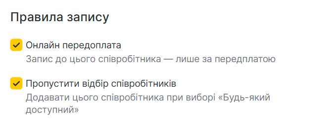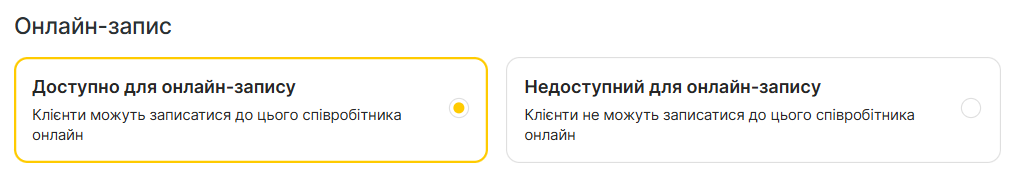 Доступність при онлайн-записі: оберіть, чи можуть клієнти записуватись онлайн до цього співробітника.
