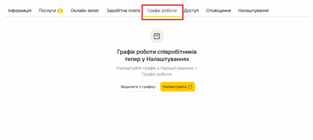 Вкладка «Графік роботи» #