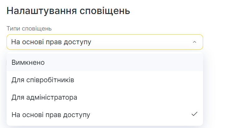 У випадаючому меню типів сповіщень можна обрати доступ до сповіщень за кількома параметрами.