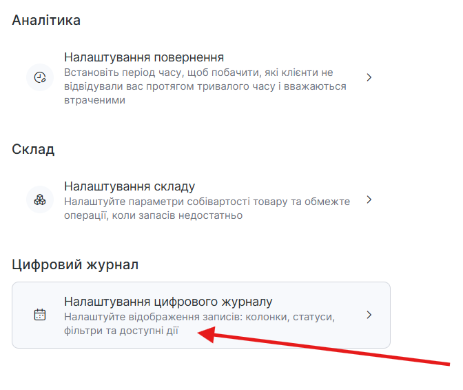- Перейдіть у розділ Налаштування > Цифровий журнал > Налаштування цифрового журналу.