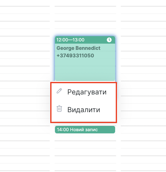 Якщо техперерва вже додана, її можна змінити або видалити у вікні запису через кнопку Редагувати.