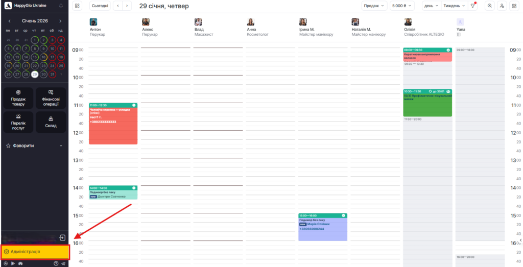 - Унизу натисніть Адмініструація.