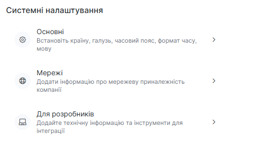 Доступні розділи можуть залежати від вашої ролі / прав доступу та тарифного плану. Якщо ви не бачите пункт меню, він може бути обмежений для вашого облікового запису.