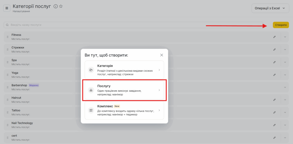 Послуги можна створити та додати по одному вручну або завантажити списком із Excel-файлу.