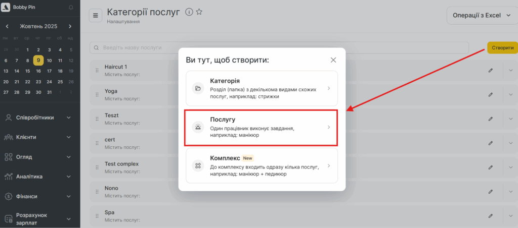 2. Оберіть “Категорію” послуги, наприклад, “Стрижки“. За промовчанням буде вибрано категорію, в якій створюється послуга.