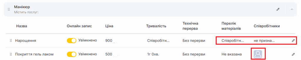- Ви можете призначити кількох співробітників на одну послугу.
