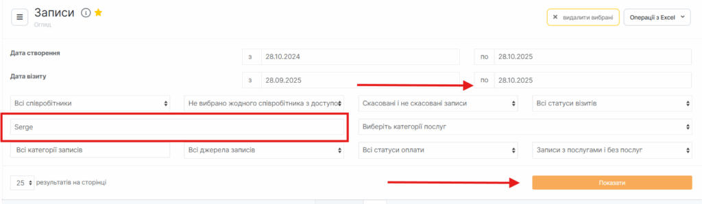 – Перейдіть до Огляд > Записи. Відфільтруйте майбутні записи за співробітником, щодо якого є питання.