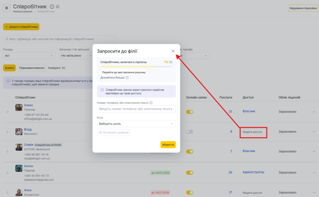 Детальніше про призначення ролі та доступу співробітнику читайте у відповідній статті.