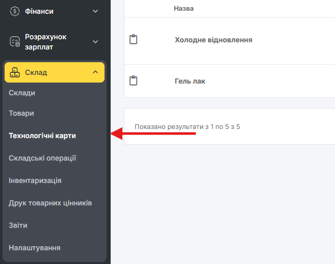 - Для початку роботи перейдіть до розділу Склад > Технологічні карти та натисніть кнопку Додати технологічну карту.