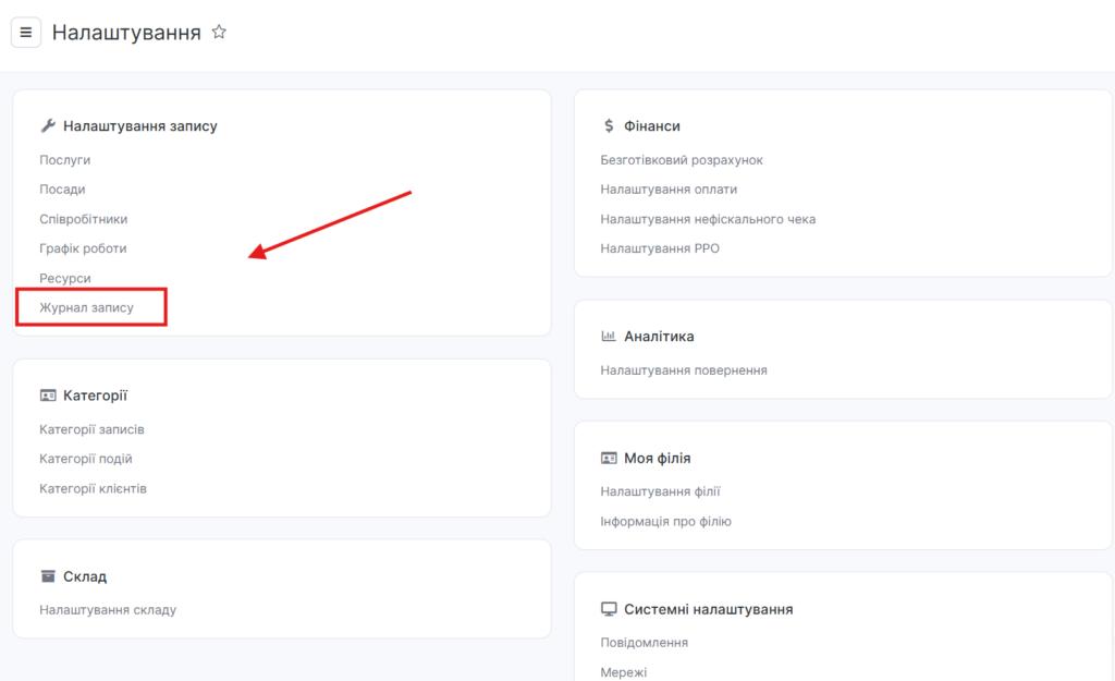 Це налаштування регулює записи через журнал і віджет онлайн-запису.