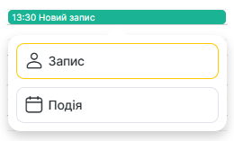 - Виберіть тип запису: Запис або Подія: