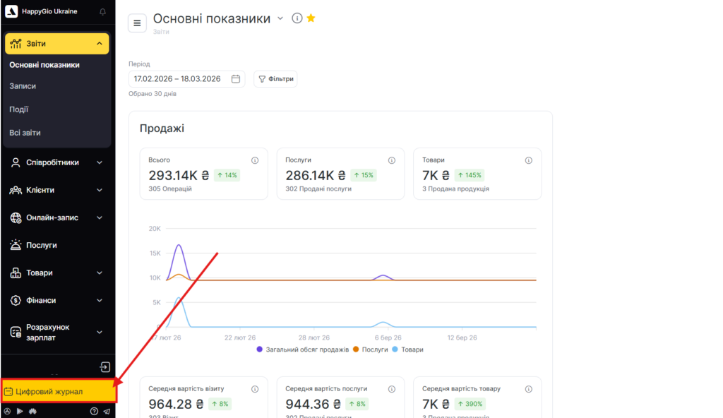 ви можете перегортати дні в журналі, а щоб повернутися в поточну дату, можна просто натиснути кнопку Сьогодні. - Натисніть кнопку з сумою праворуч, і вам відкриється фінансова статистика за день: скільки грошей надійшло готівкою і безготівкою, на яку суму створено записів, яка частина суми була оплачена лояльністю і сума передбачених знижок. Там же, натиснувши продати товар, ви можете продати товар клієнту, навіть якщо у нього немає запису на обраний день. Детальніше про продаж товару читайте тут.