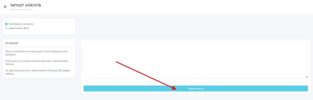Скопіюйте дані з таблиці в поле завантаження та натисніть кнопку «Завантажити».