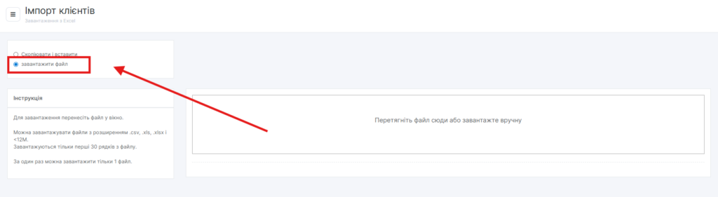 - Завантажте дані. Це можна зробити двома способами — скопіювати дані з таблиці Excel та вставити їх у вікно завантаження в Altegio або просто перенести файл із папки.