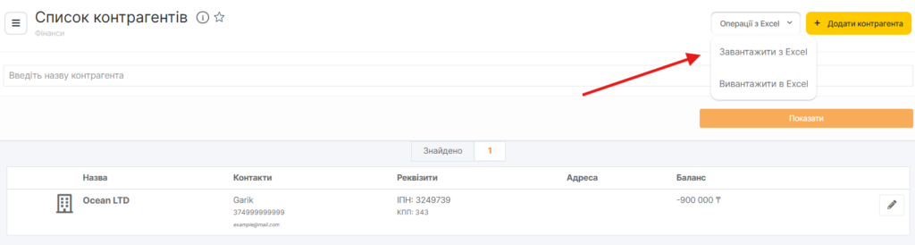 - Перейдіть в розділ Фінанси > Контрагенти.