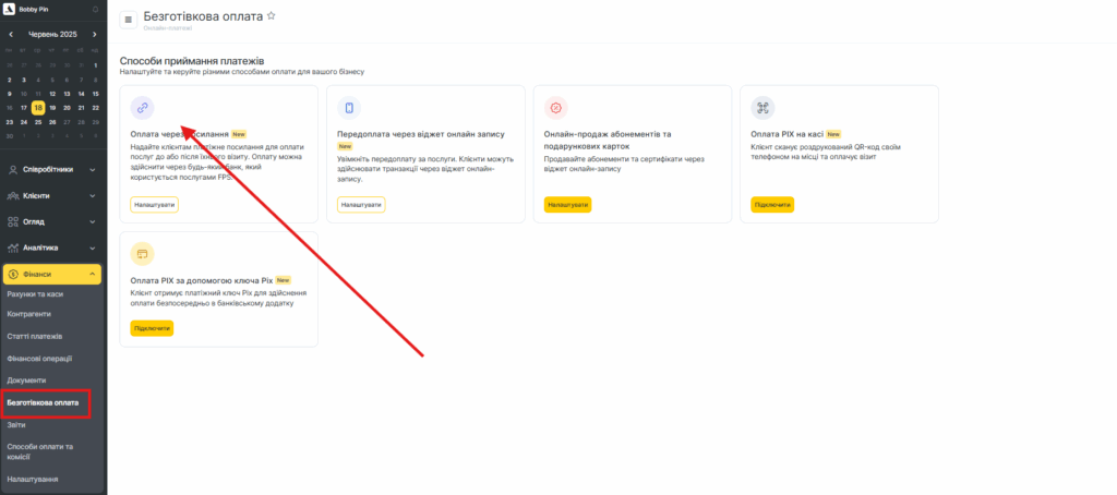Після підключення, в межах запису, коли клієнт хоче оплатити послугу чи товар: