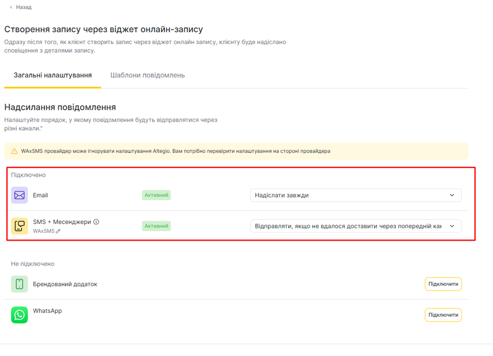 Виконайте детальне налаштування каналів, по яких надсилатимуться повідомлення: