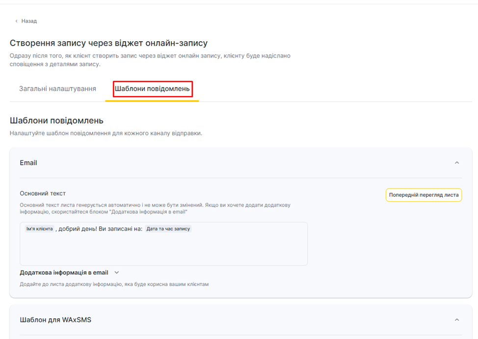 Щоб налаштувати власний шаблон перейдіть у вкладку «Шаблони повідомлень»
