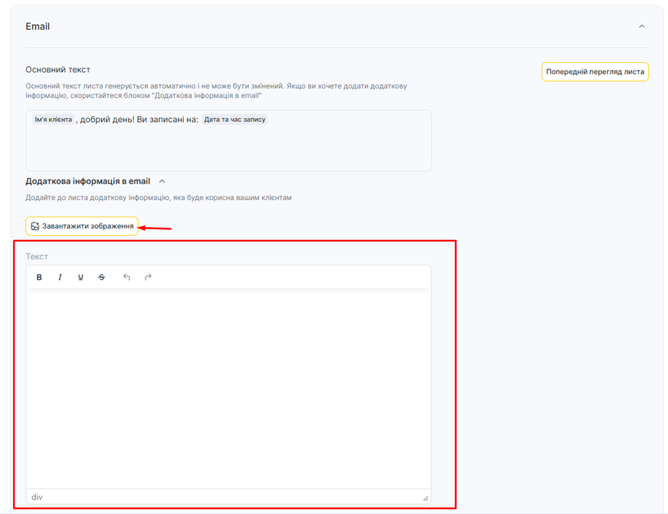 Якщо клієнти вашої філії отримують Email-повідомлення, то ви можете внести додатковий текст до таких сповіщень: