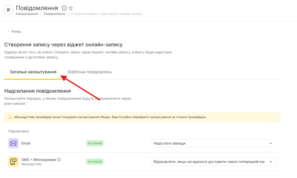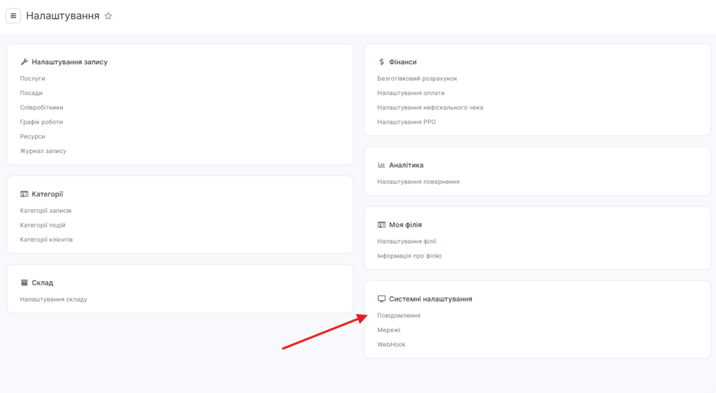 - Перейдіть в основному меню до Налаштування > Системні налаштування > Сповіщення на вкладку Типи повідомлень.