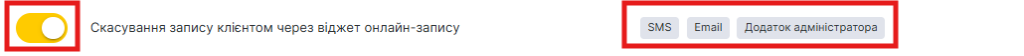 - У блоці Адміністратору виберіть тип Скасування запису клієнтом через віджет онлайн-запису і натисніть кнопку Змінити із зображенням олівця.